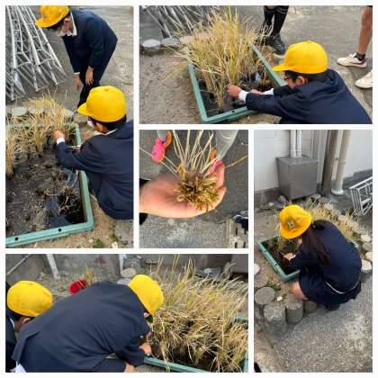5年生が、JA(農業協同組合)からいただいた稲を校内でも育てていました。