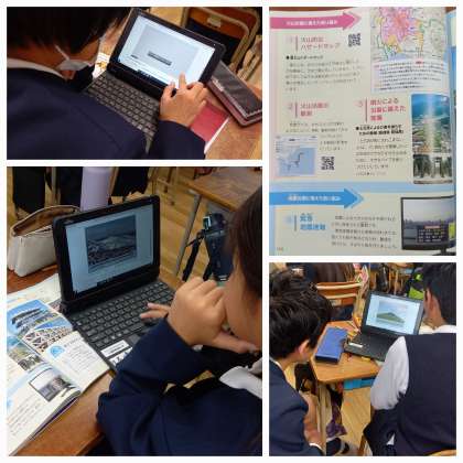 火山の噴火、地震の発生など、自然界で起こる事象についての動画を見たり、資料を読み比べたりしています。