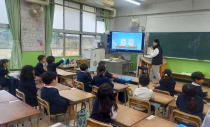 1年生は、英語表現に楽しく親しんでいます。