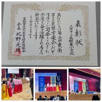 12月7日(土)平野小学校で「第二十回東南子ども民族音楽会」が開催されました。