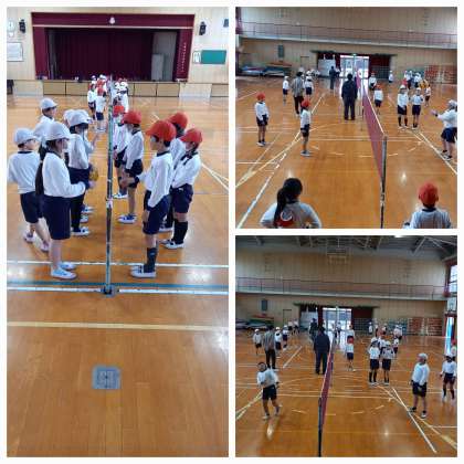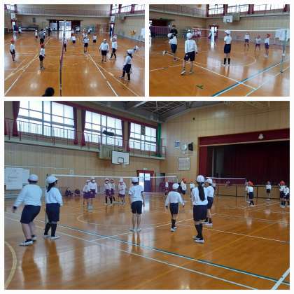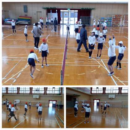 ネット型ゲーム「キャッチバレーボール」に取り組んでいます。