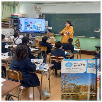 これまでと比べて、植物や動物の様子はどのようになっていたのかを話し合っています。