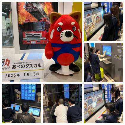 おおさか防災ステーション・タスカルシアター・減災を学ぶ・消化を学ぶ・煙を学ぶ・がれきの街(余震体験)・震度7体験・振り返り学習に取り組んできました。らら
