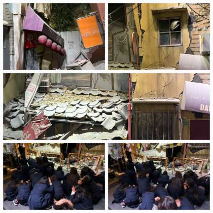 おおさか防災ステーション・タスカルシアター・減災を学ぶ・消化を学ぶ・煙を学ぶ・がれきの街(余震体験)・震度7体験・振り返り学習に取り組んできました。