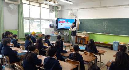 視聴覚教材から流れてくる音声をよく聞いて「Fishing」と答えることができていました。