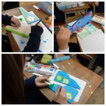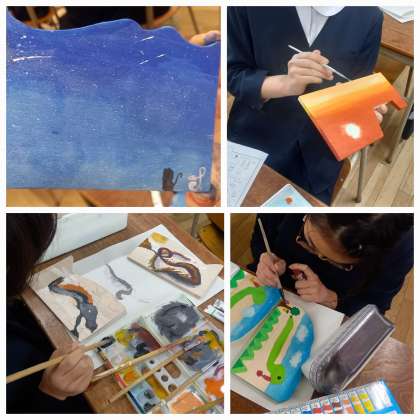 電動糸ノコギリを使って、イメージする形に板を切り出したら、次は着色です。