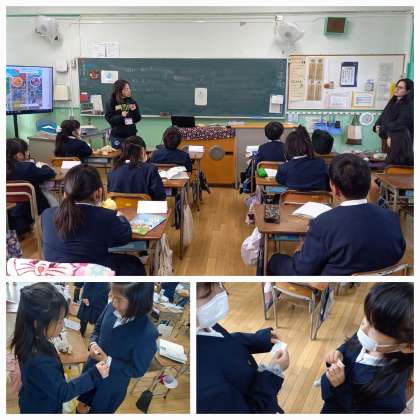 外国語活動の時間に、英語表現だけでなく楽しみながら漢字の学習もしています。