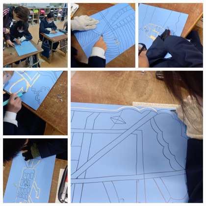 彫刻刀を使って 公開日 2025/01/29 更新日 2025/01/29 学校生活 初めての彫刻刀に、子ども達は楽しさだけでなく緊張感を持っています。 安全に気をつけて、少しずつ彫り進めています。 いいね(0)