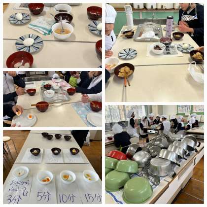 茹でる時間によって変わる状態の変化を興味深く観察していました。