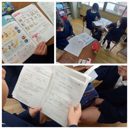 保健のテストに向けて、友だち同士で問題を出し合っています。