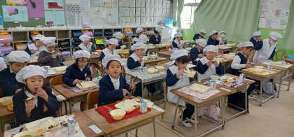 献立を考えた平野区平野北中学校の生徒さんから、「キンパ」を給食で食べたいと考えました。自分で手巻きするので、楽しく食べられます。とのメッセージが届いています。