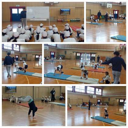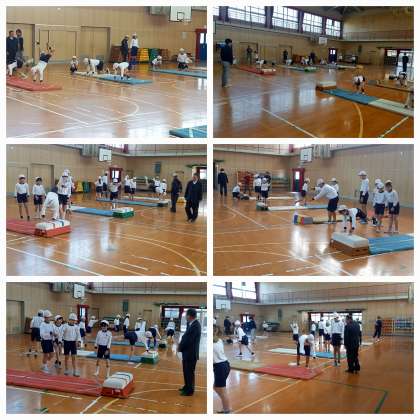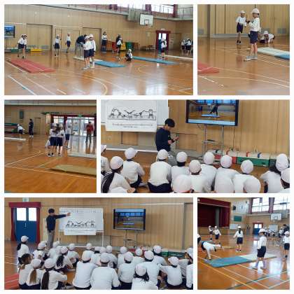 感覚づくりの運動のあと、スモールステップタイム、チャレンジタイムと活動し、習得課題の解決に取り組みました。