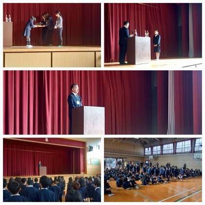 今朝は、安井伸也平野区副区長に来校いただき、図書に関する表彰を行いました。
