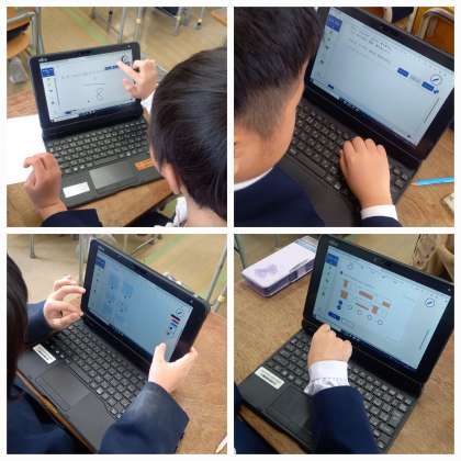 学習者用端末を使って、算数の復習問題に取り組んでいます。