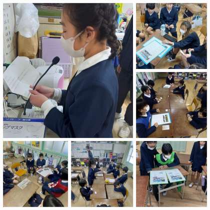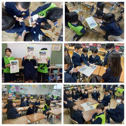 たてわり班メンバーで撮った写真が貼られた台紙に、班の一人一人からのメッセージが付け加えられ、素敵な贈り物が完成しました(^-^)