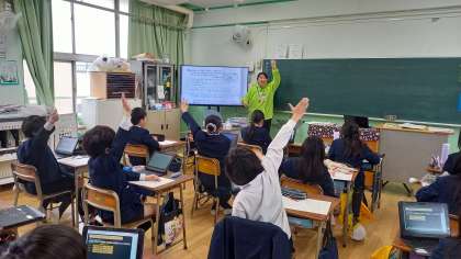 社会科で学習した「方位」(東西南北)を活用して、太陽と陰の動きについて説明することもできるようになっています。
