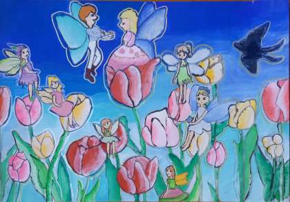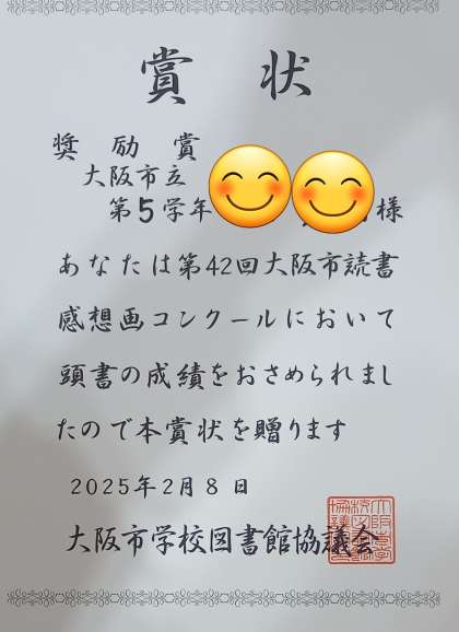 5年生児童が、「おやゆび姫」の読書感想画で表彰されました。