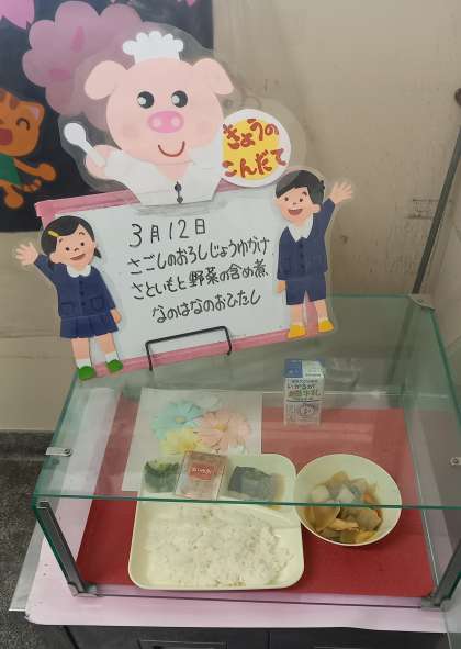 今日は、春の訪れを感じることのできる「菜の花のおひたし」が献立にありました。