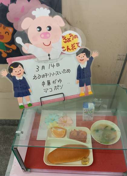 給食委員の子ども達が、「野菜が苦手な人もおいしく調理されているので好き嫌いせず食べてくださいね!」と呼びかけていました。