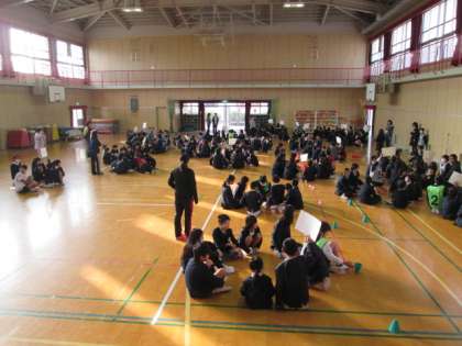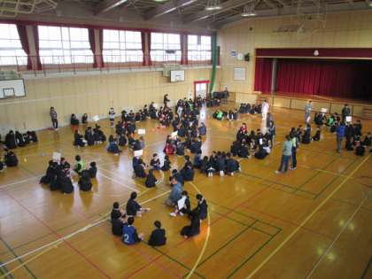 1月21日(木)、3学期1回目の縦割り児童集会を行いました。今回は、アニメに関する問題が出ました。ふだんは、6年生が中心となっていることが多いのですが、この日のテーマは、低学年の子どもたちも得意です。解答が発表されると、「ワーツ!!」とあちこちから歓声が上がりました。1年間、取り組み続けてきた縦割り児童集会も、残すところあと2回です。1年間、リーダーシップを発揮し続けてきた6年生の子どもたちのがんばりに、拍手を送りたいと思います。