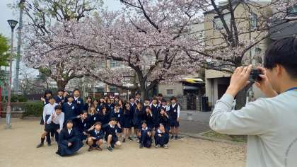6年生が、桜の樹の下で写真撮影していました(^-^)