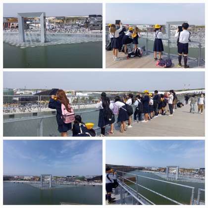 大屋根リングの上から「噴水ショー」を楽しみました。