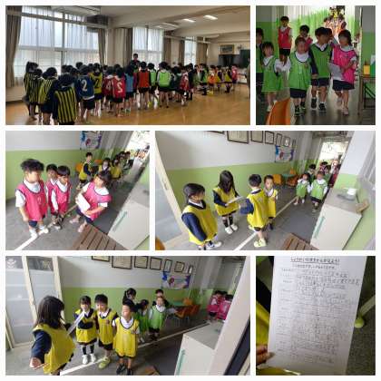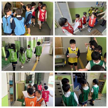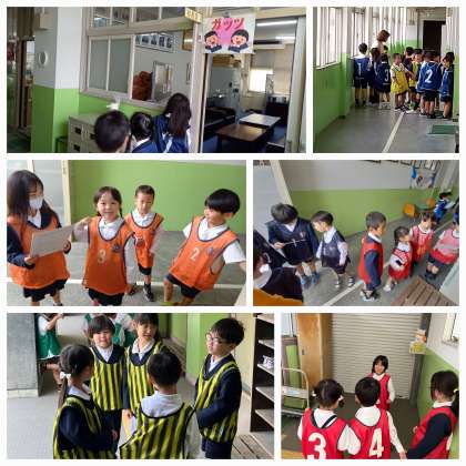 2年生が優しく1年生をリードし、学校たんけんをしました。