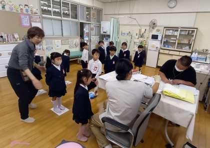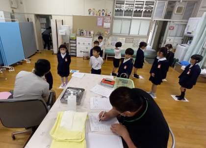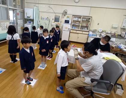 学校歯科医のDr.に、1年生から順に全児童の歯科検診をしていただいています。