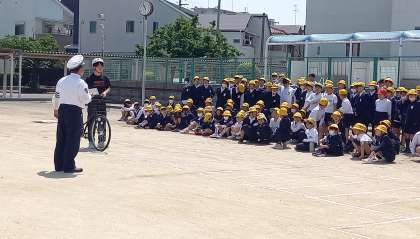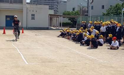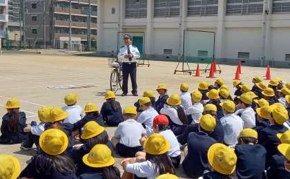 平野警察の方に、自転車の正しい乗り方について教えていただきました。