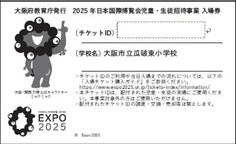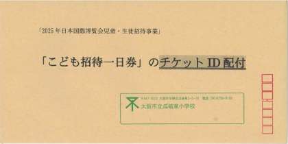 児童に配付しました封筒の中に万博チケットIDが入っています。