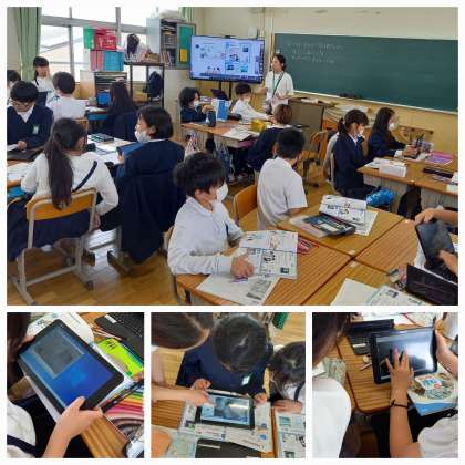 教科書に載っている「いろいろな気象情報」のQRコードを活用し、雲の動きを見ています。