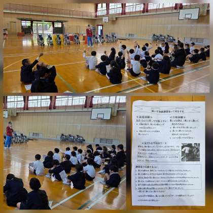 リハビリテーションセンターの方々に来ていただき、3年生が【車いす体験】をします。