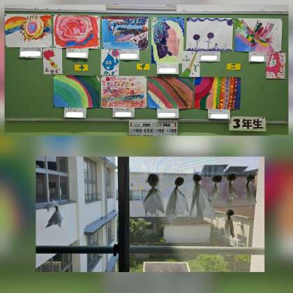 4年生の教室では、20日(火)の遠足が行けるようにとてるてる坊主が飾ってありました。