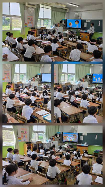 繰り返し視聴しているので、子ども達は簡単な英語表現を覚え、キャラクターの台詞と一緒に英語を言ってます。
