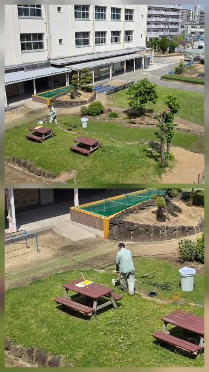 子ども達の大好きな「うりひガーデン」の手入れをしています。