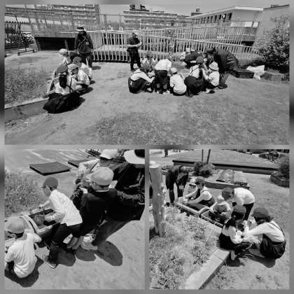 今日の「みんなの時間」では、野菜の苗を植えました。