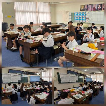 「ありがとうのはな」を歌とリコーダー奏で、楽しみます。