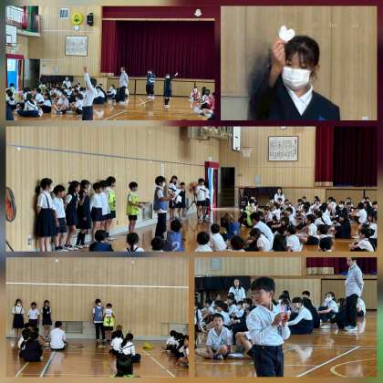 みんなから寄せられたハートカードは、うりひがまつりのめあての周りに貼り、うりひがまつりを盛り上げます。