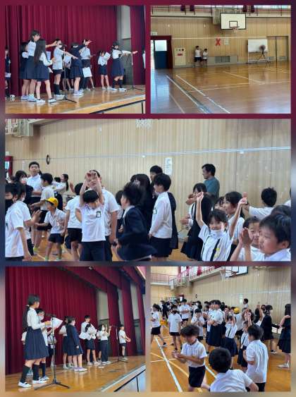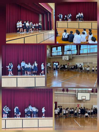 うりひがまつりを盛り上げよう企画で、集会委員が、昼休みにゲリラ集会を開きました。