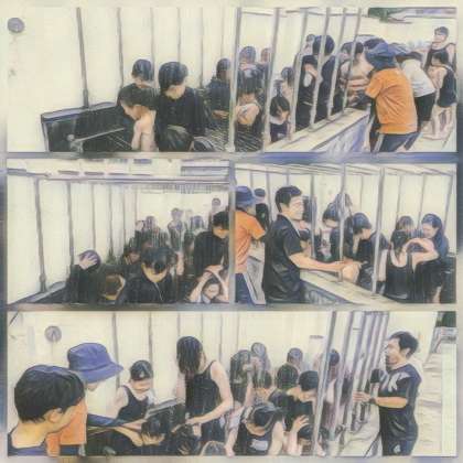 6年生のサポートを受け、1年生が小学校のプールにはじめて入りました。