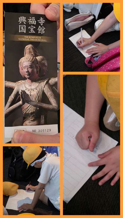 子ども達は、展示物それぞれの表情の違いに気づいたり、説明文を読んだりしていました。