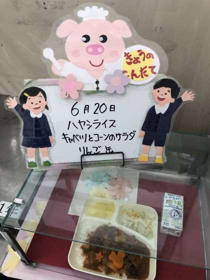 1年生が給食室たんけんの際に見た「ラッキーにんじん」が入っています。