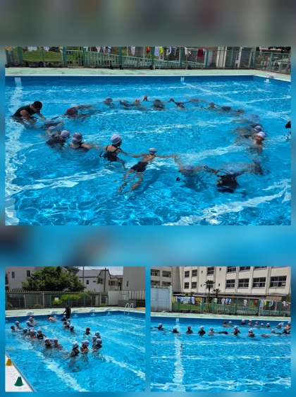 プールの中で、浮かんだりもぐったりして水と友だちになっています。