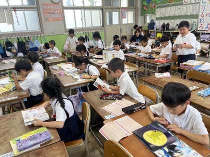 自分の好きな本を選び、静かに読書をしています。 読んだ本は、ひらちゃん読書ノートに記録しています。