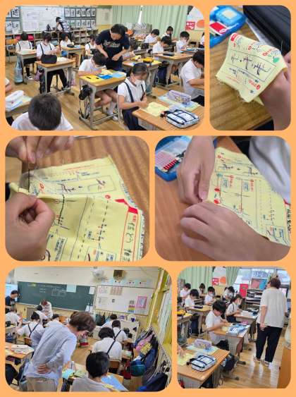 生涯学習「手芸」に参加している地域の方が、5年生の家庭科にゲストティーチャーとして来てくださいました。