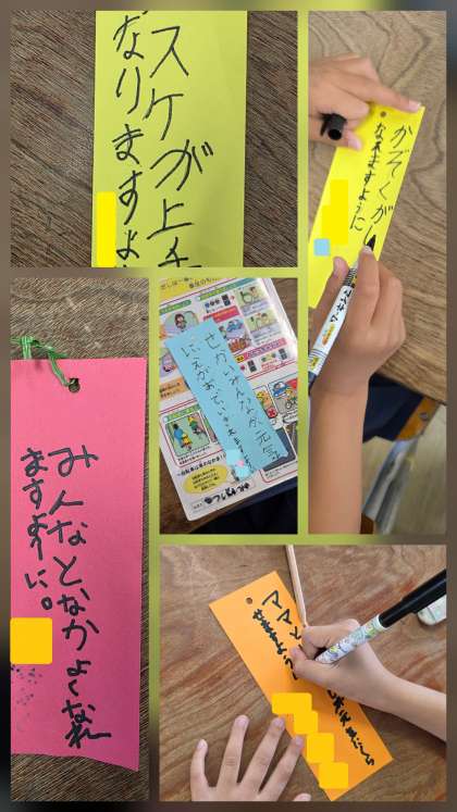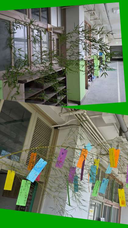 2年生の子ども達が、願い事を書いた短冊を笹に飾りました。