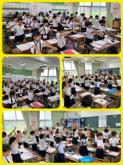 スポーツ委員と保健委員のコラボ企画「元気もりもり体操」に早速チャレンジした1年生です(*^^*)