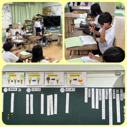 4年生が、1学期の終わりを迎えるにあたり、学級目標の達成に向けて、またもっともっと友だちと仲良くなれるようにと話し合いをしました。