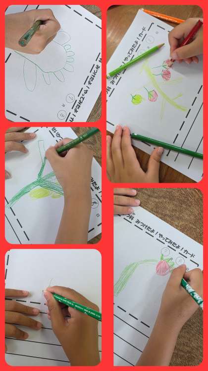 ミニトマト 公開日 2025/07/08 更新日 2025/07/08 学校生活 観察したミニトマトを中心にカードを記録してほしいのですが… 子ども達は、なぜか鉢に力をいれてかいています。 いいね(0)