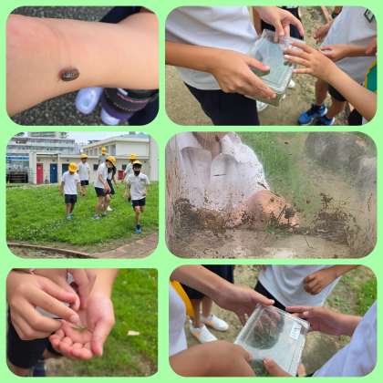 休み時間になると、うりひガーデンには生きものさがしをする子ども達の姿が見られます。